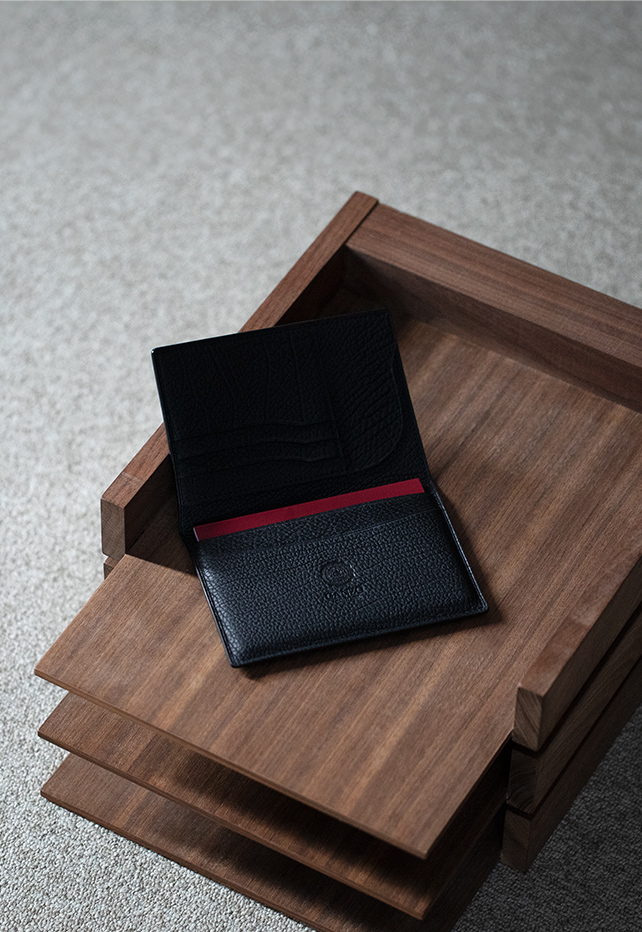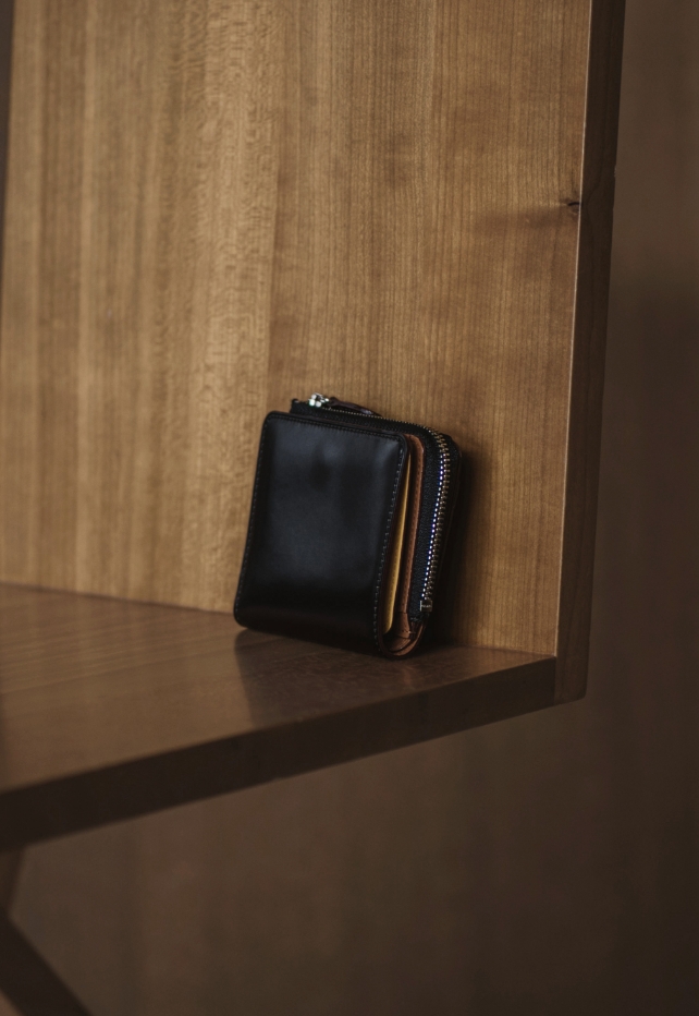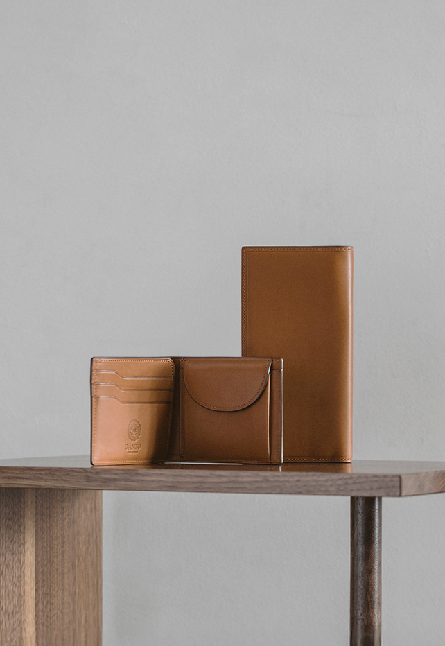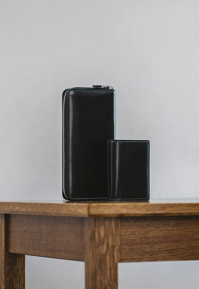 使い込むことで色艶が豊かになる、ホーウィン社のベジタブルタンニンレザーを、限りなく薄くコンパクトに仕立てたシリーズ。