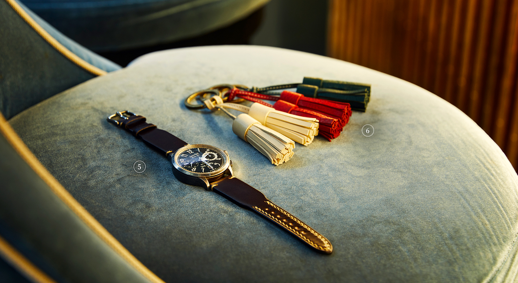 肌身離さず手元に置いておきたいものがある。たとえば自宅やクルマの鍵がそうだろう。なくしてはならないものだから、キーホルダーをつけて自らに注意喚起をしたいところだが、それはなんでもいいわけではない。ドレッシーな見た目のタッセルキーホルダーなら、そういった役目を果たすのに相応しいのではないか。11色展開。