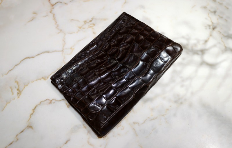 このクロコダイル革のクラッチバッグもそうですね。20年程前にNYのヴィンテージショップで購入しました。おそらく80年代の女性向けのデザインだと思うんですが、店先で一目惚れしちゃって。今でもまったく古臭さを感じないですよね。