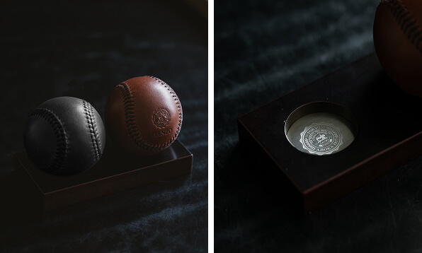 さらに、ボールを置くベースにはバットにも使用されるヨーロピアンビーチを採用。素材の選定から細部の仕立てに至るまで、本物を追求した仕様です。