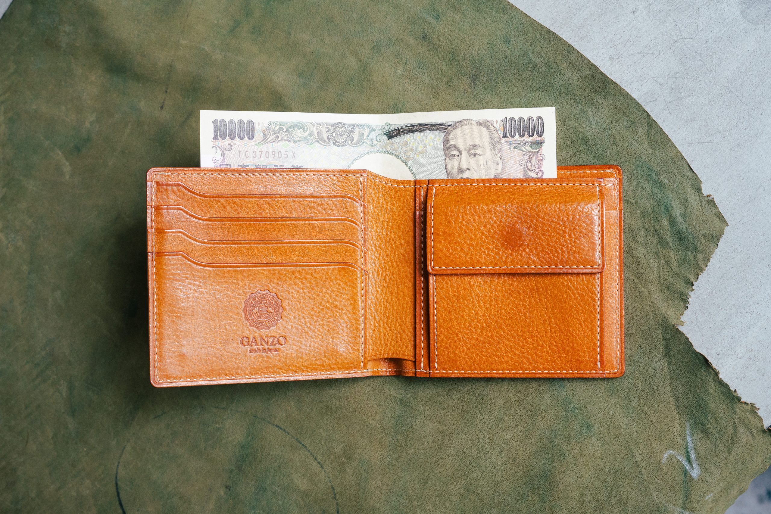 続いては、小銭入れ付き二つ折り財布。