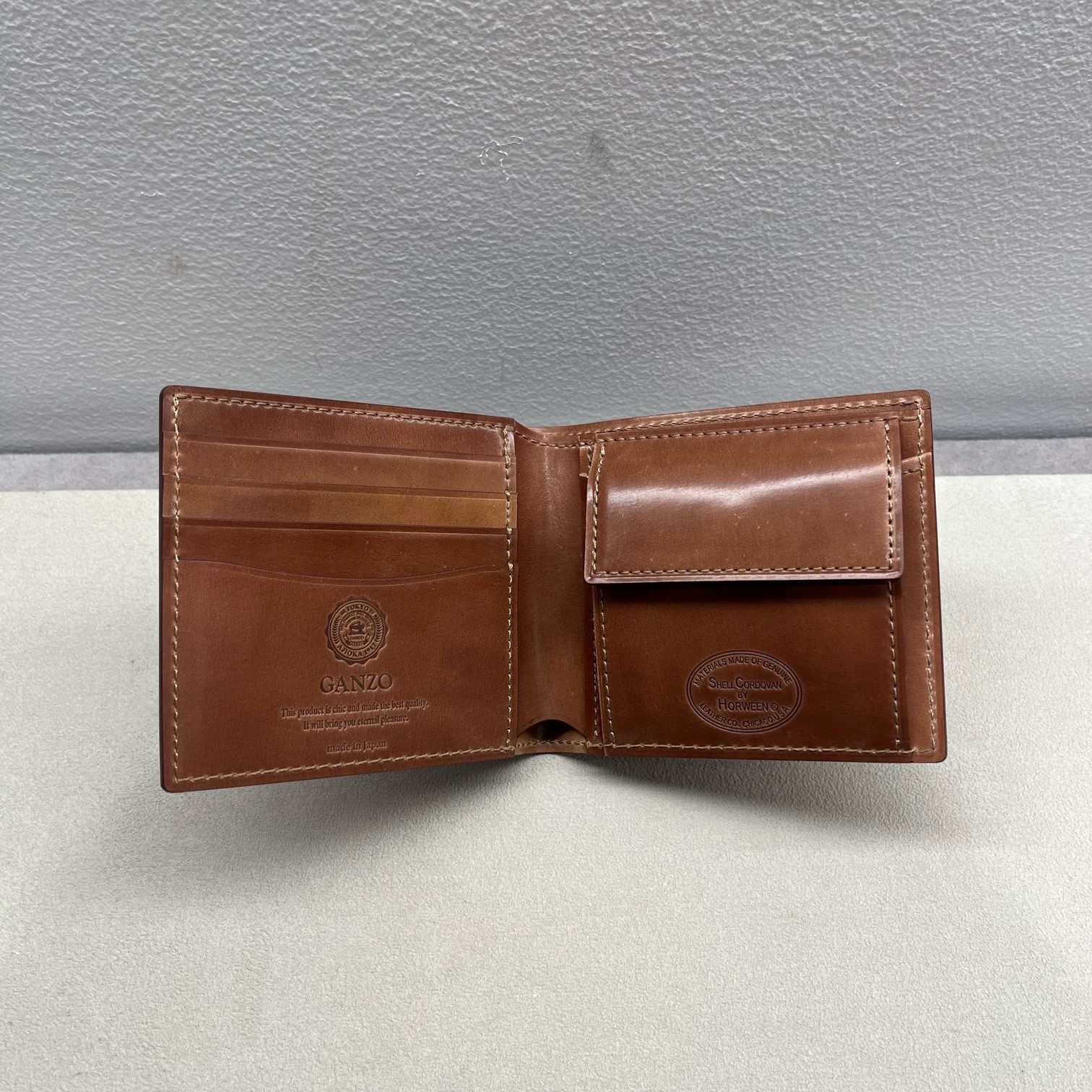 ホーウィン社の「シェルコードバン」を内装にまで使用したシリーズはオイルをたっぷりと含み、やわらかな光沢と質感を備えており手になじむのが楽しみなアイテムです。