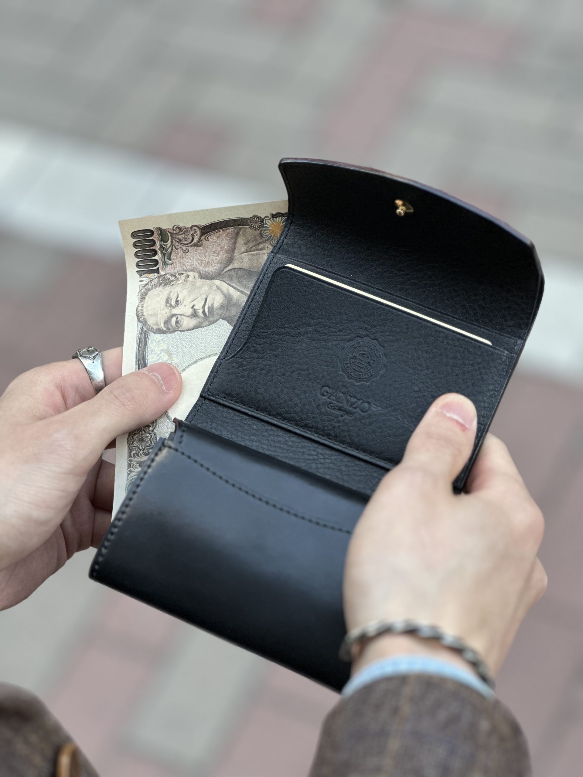利き手に合わせる事で、財布を縦の状態で使え、財布を傾けるなどの無駄な動作がなく、