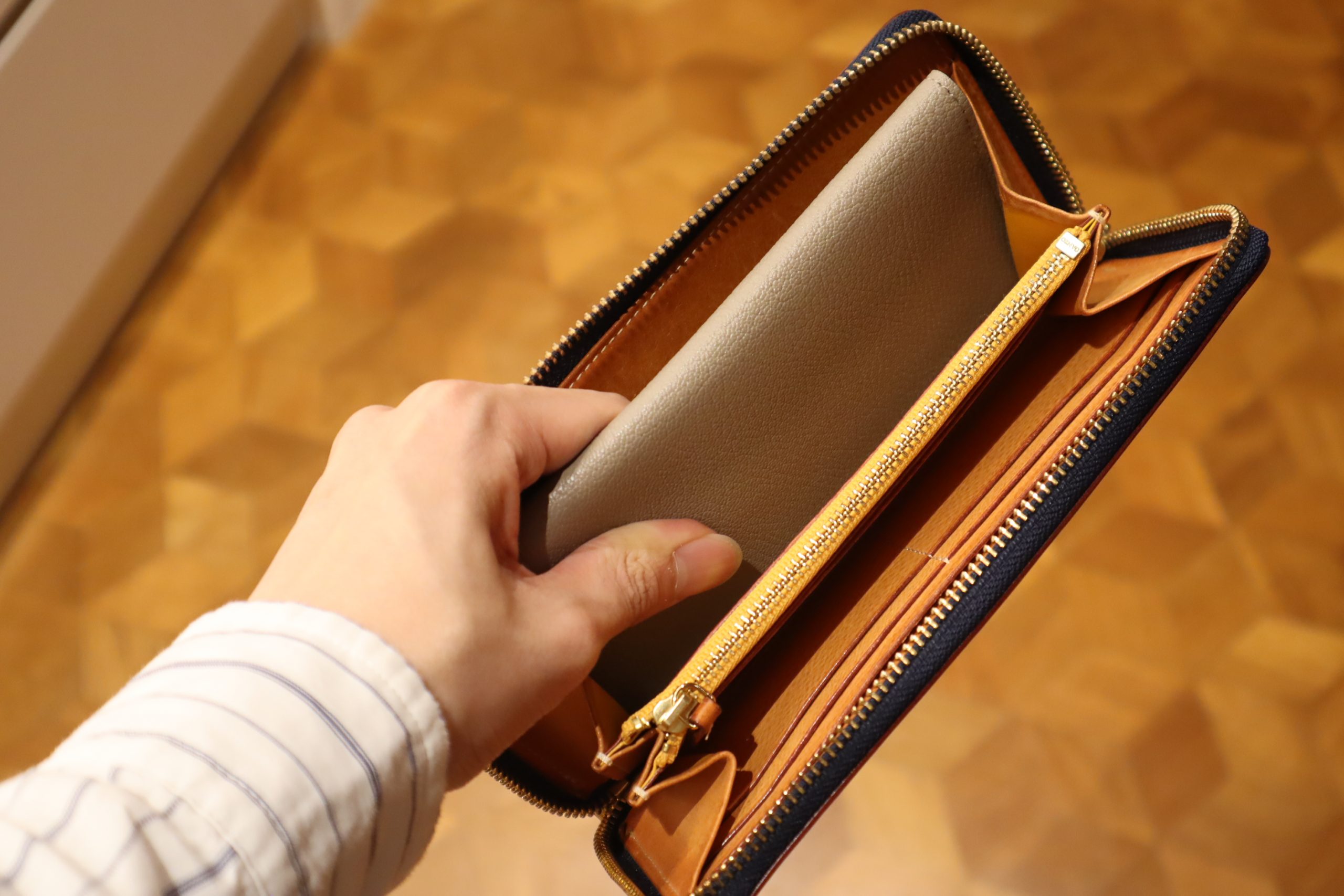 安心して入れられるサイズなので、長財布好きにはたまらないアイテム。