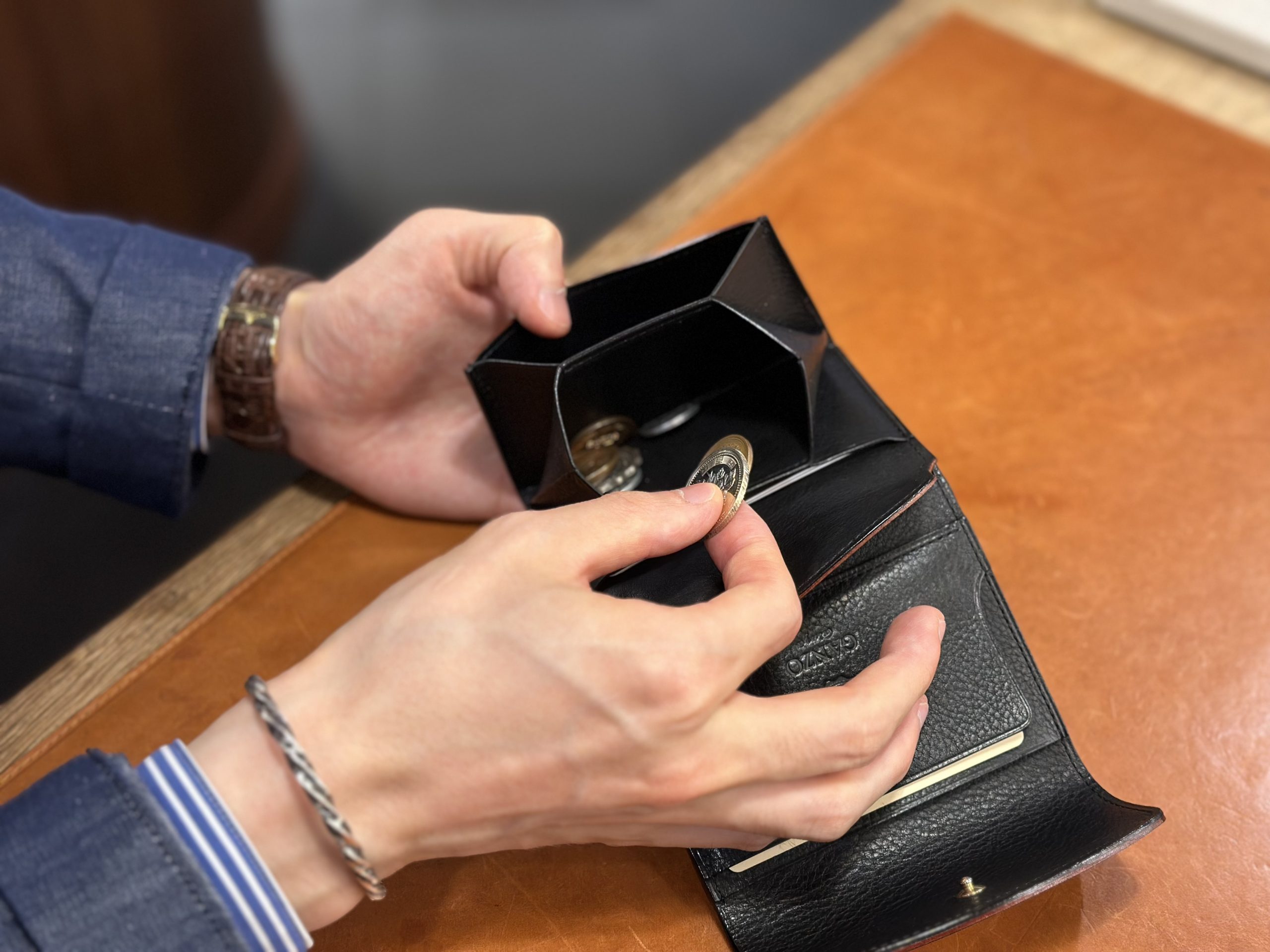 小銭入のマチ部分の開きが良いので、小銭の出し入れがしやすく、小銭が見つけやすいです。