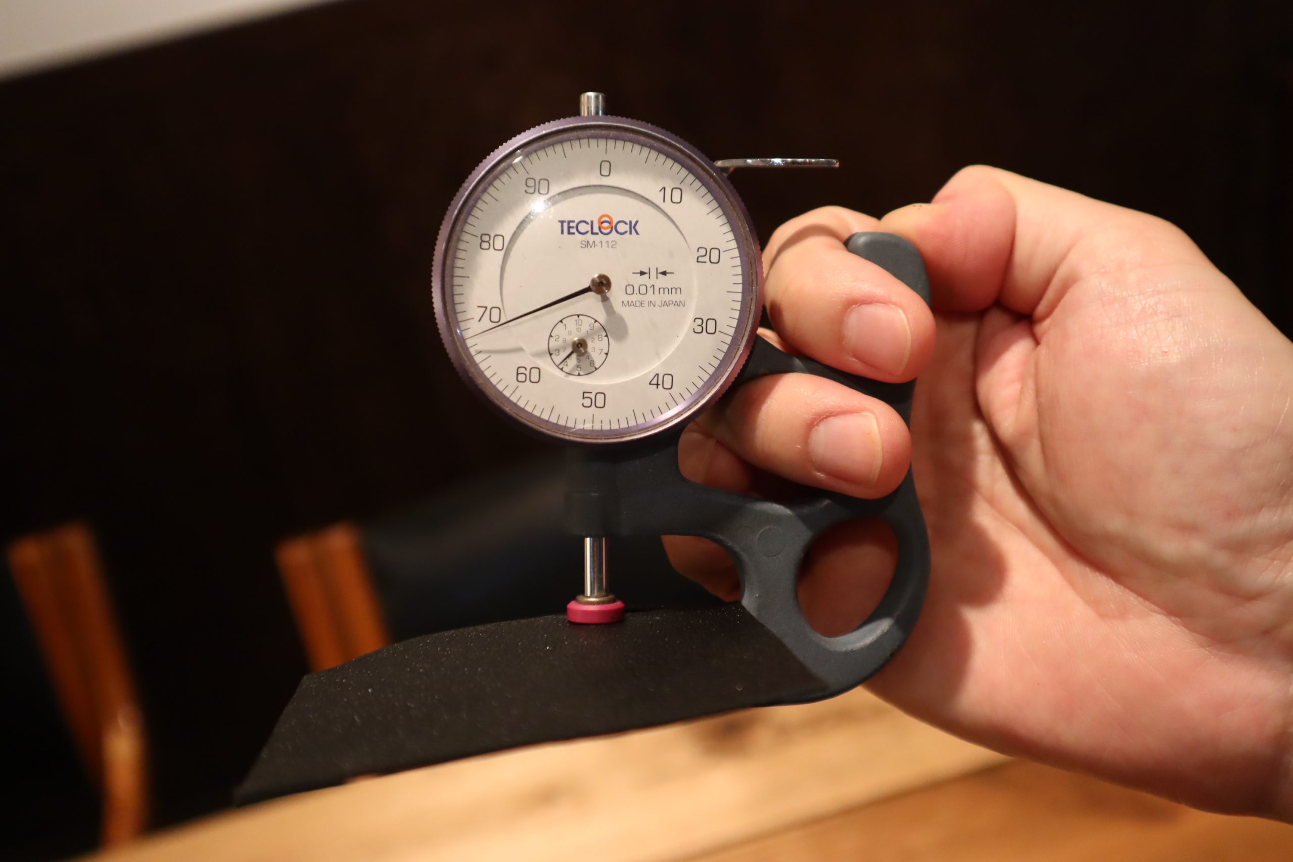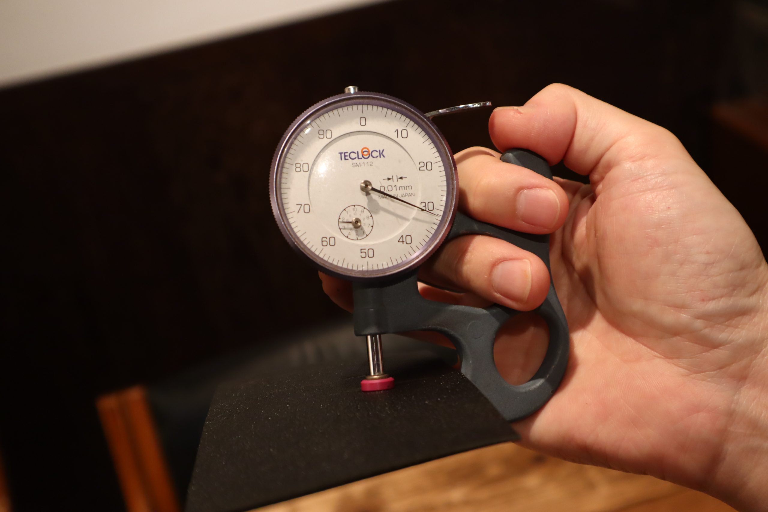 厚みの計測器で実際に2つ測ってみました。