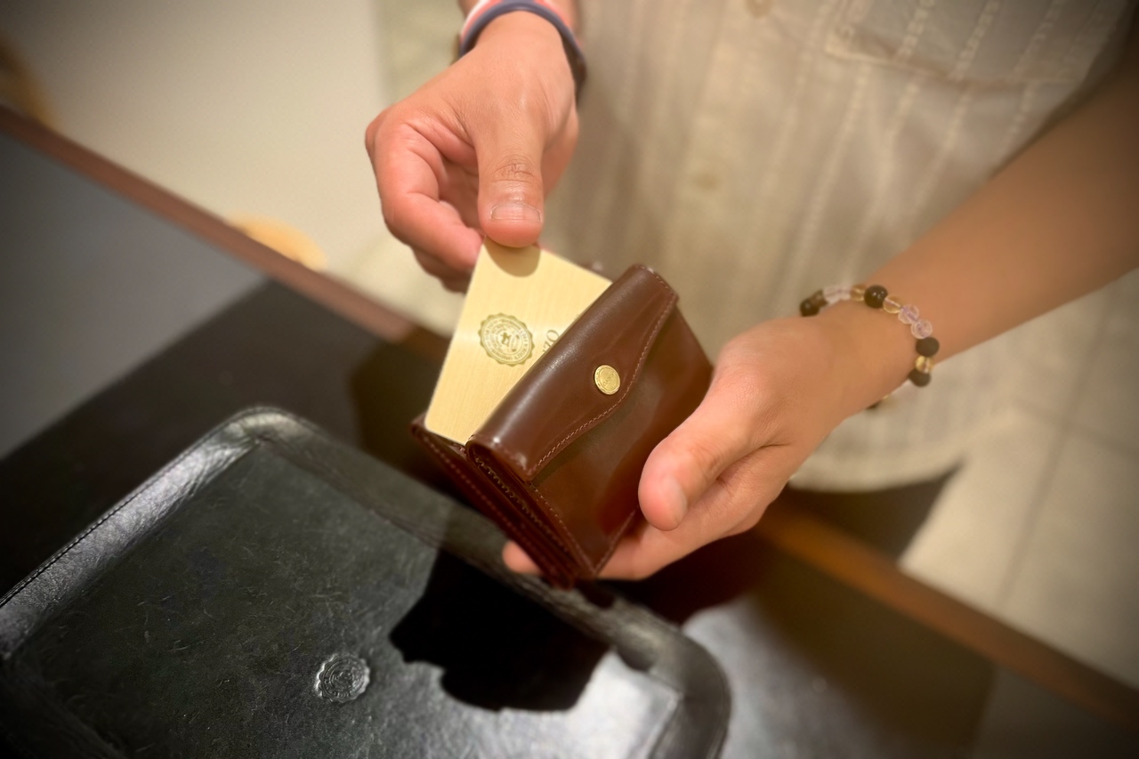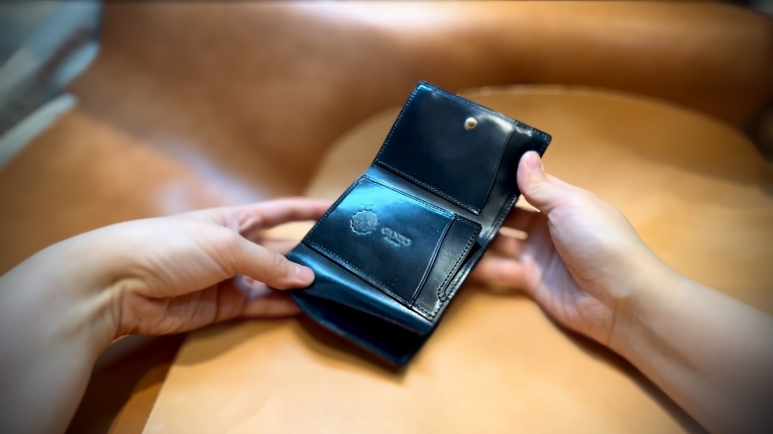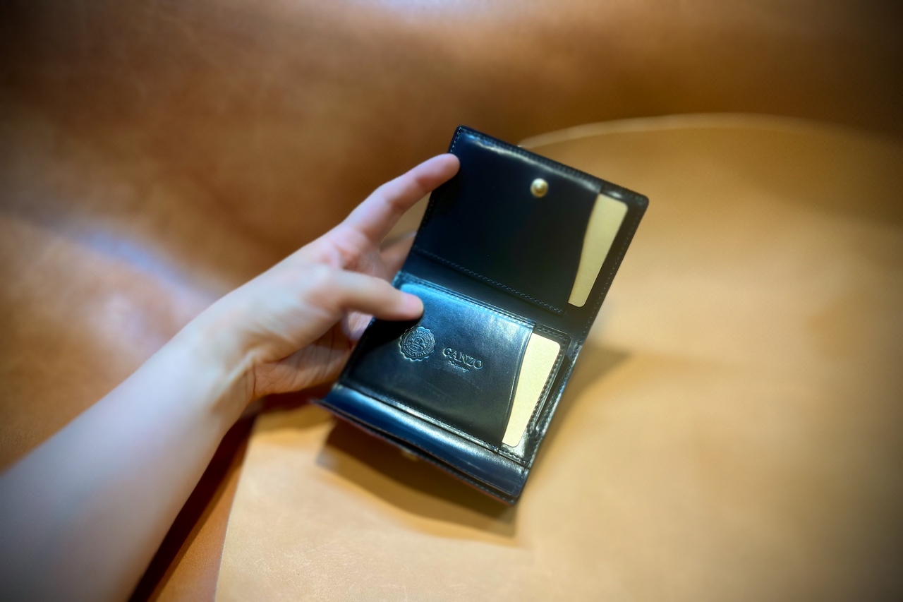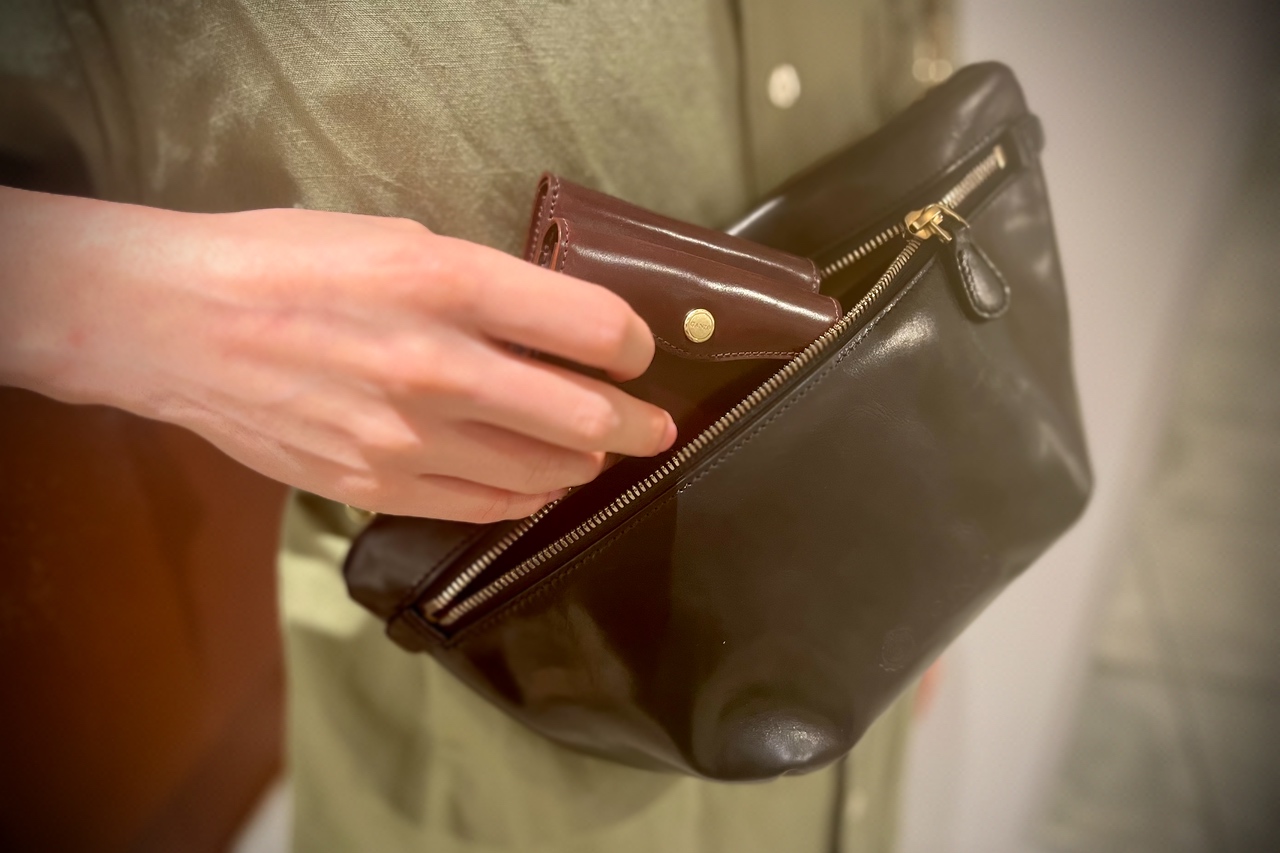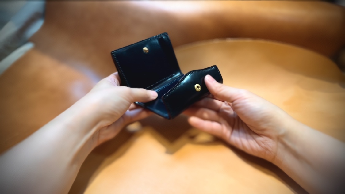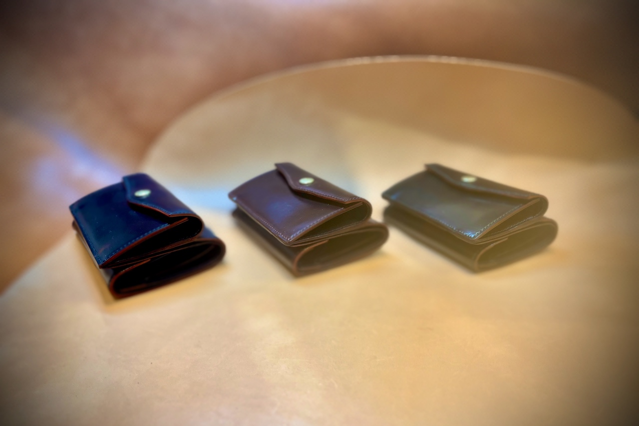 ※ もちろん、ミドルサイズのゆとりがある三つ折りウォレットもあります。