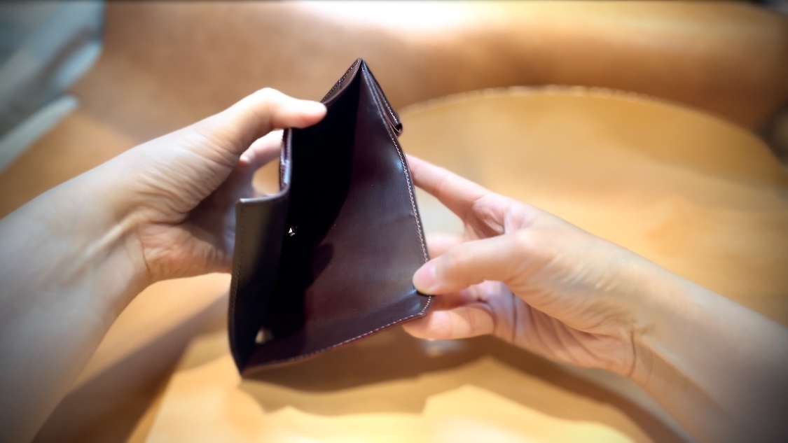 三つ折りウォレットは、折りたたむ部分が重なるため、