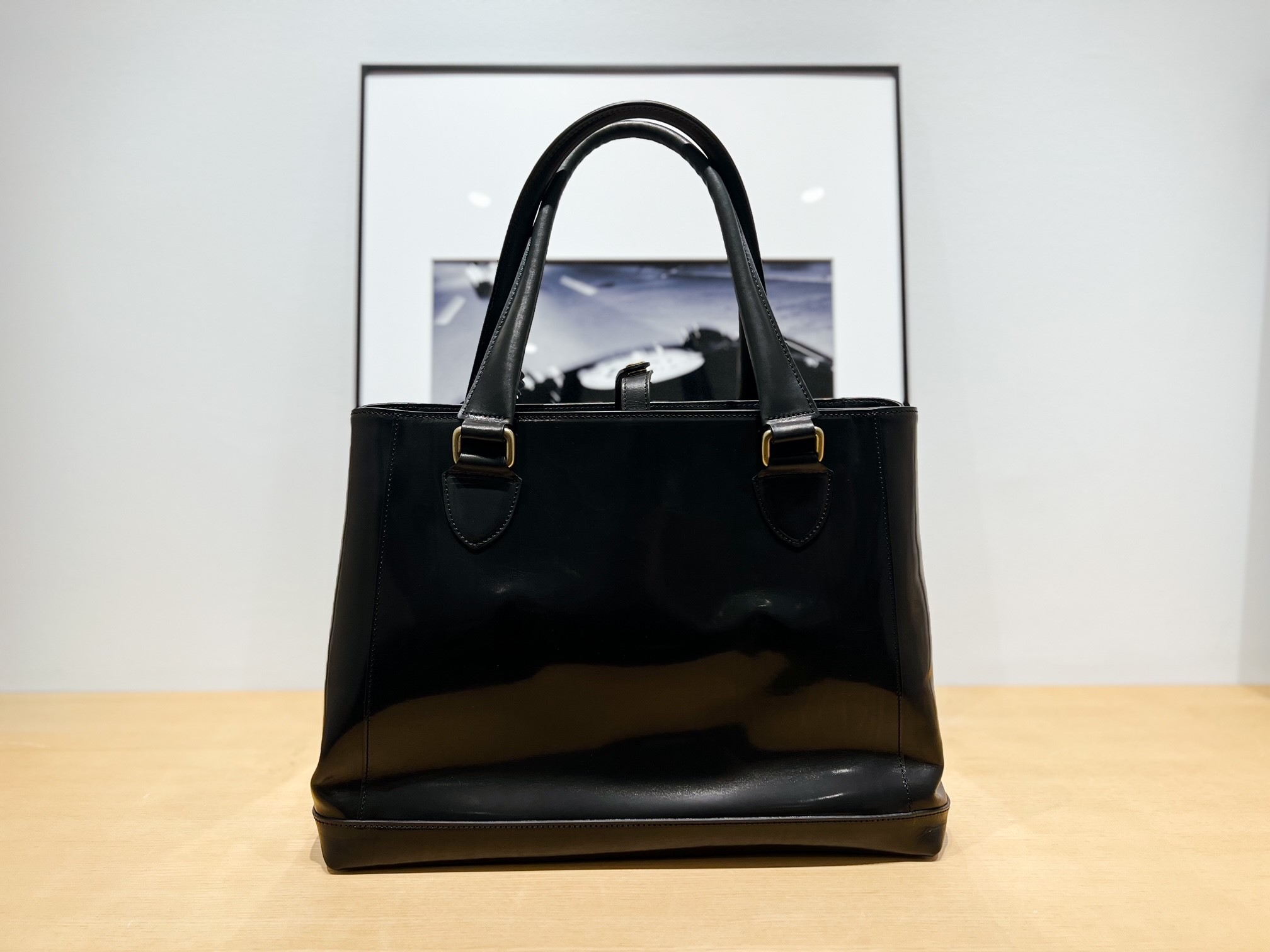 人気の高い英国の老舗タンナー”トーマスウェア”社の芯通しブライドルレザーを使用した舟形ボディのトートバッグです。