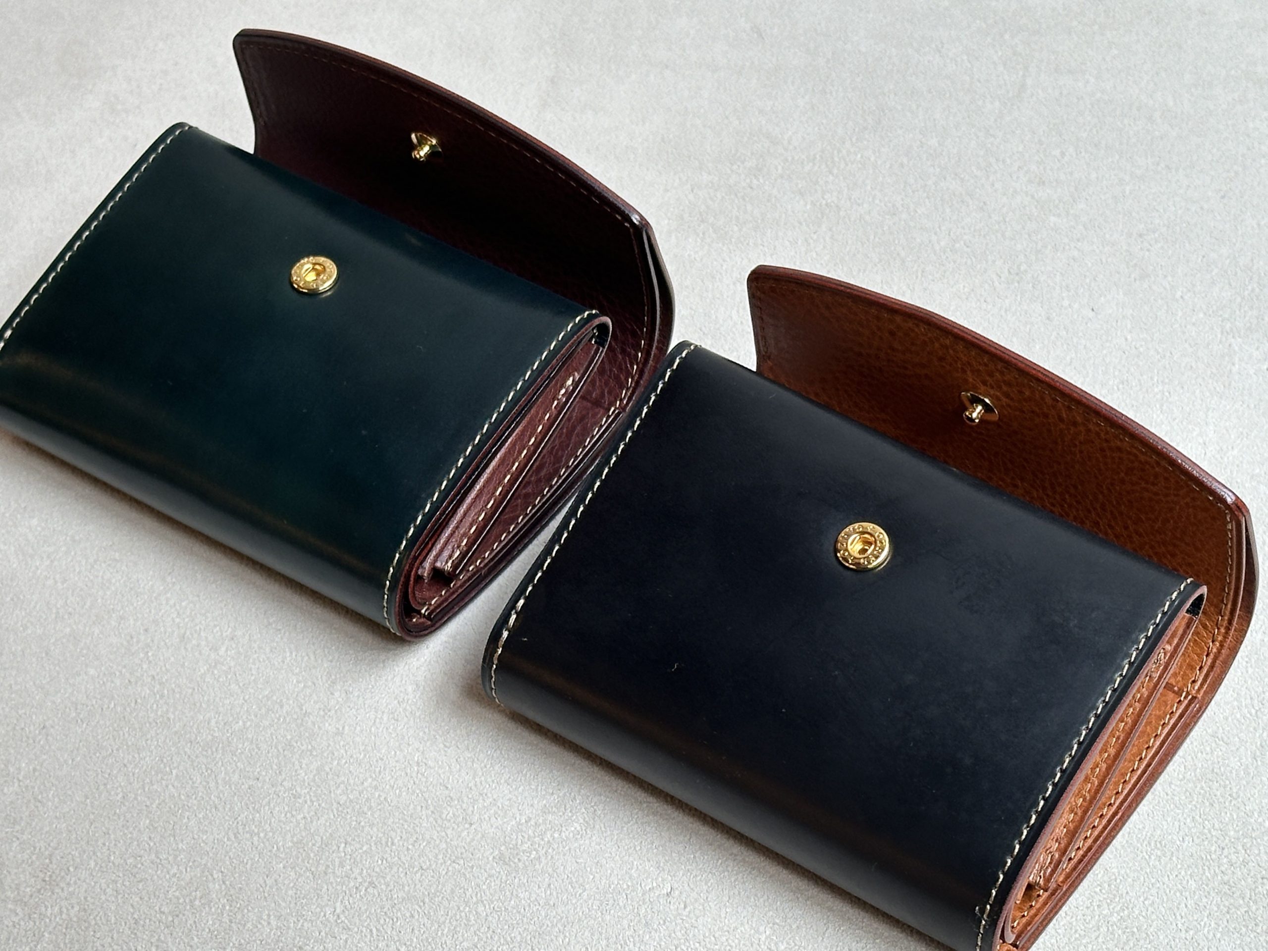 素材はそれぞれ、外装をシェルコードバン、内装はミネルバボックスを使用しております