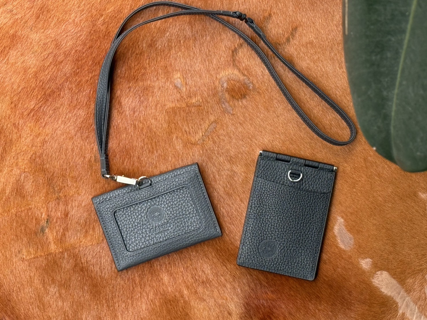 GANZOオリジナルの蝶番を使用した、自由度の高いタテ型IDホルダー、品のあるシンプルな横型IDホルダー