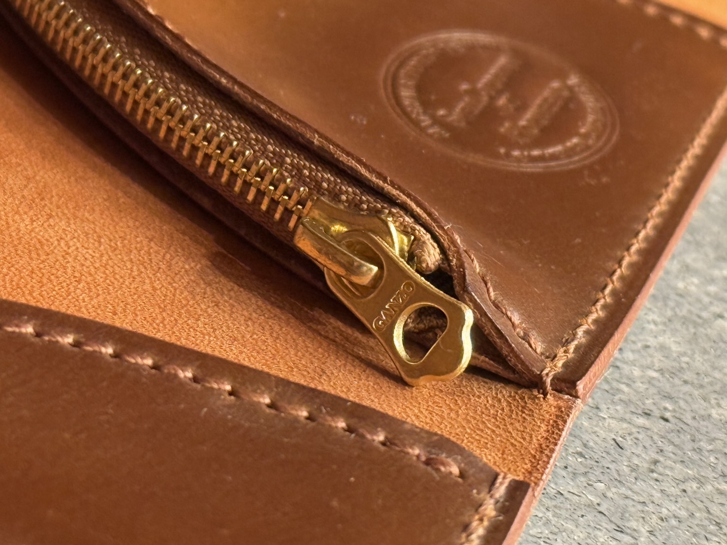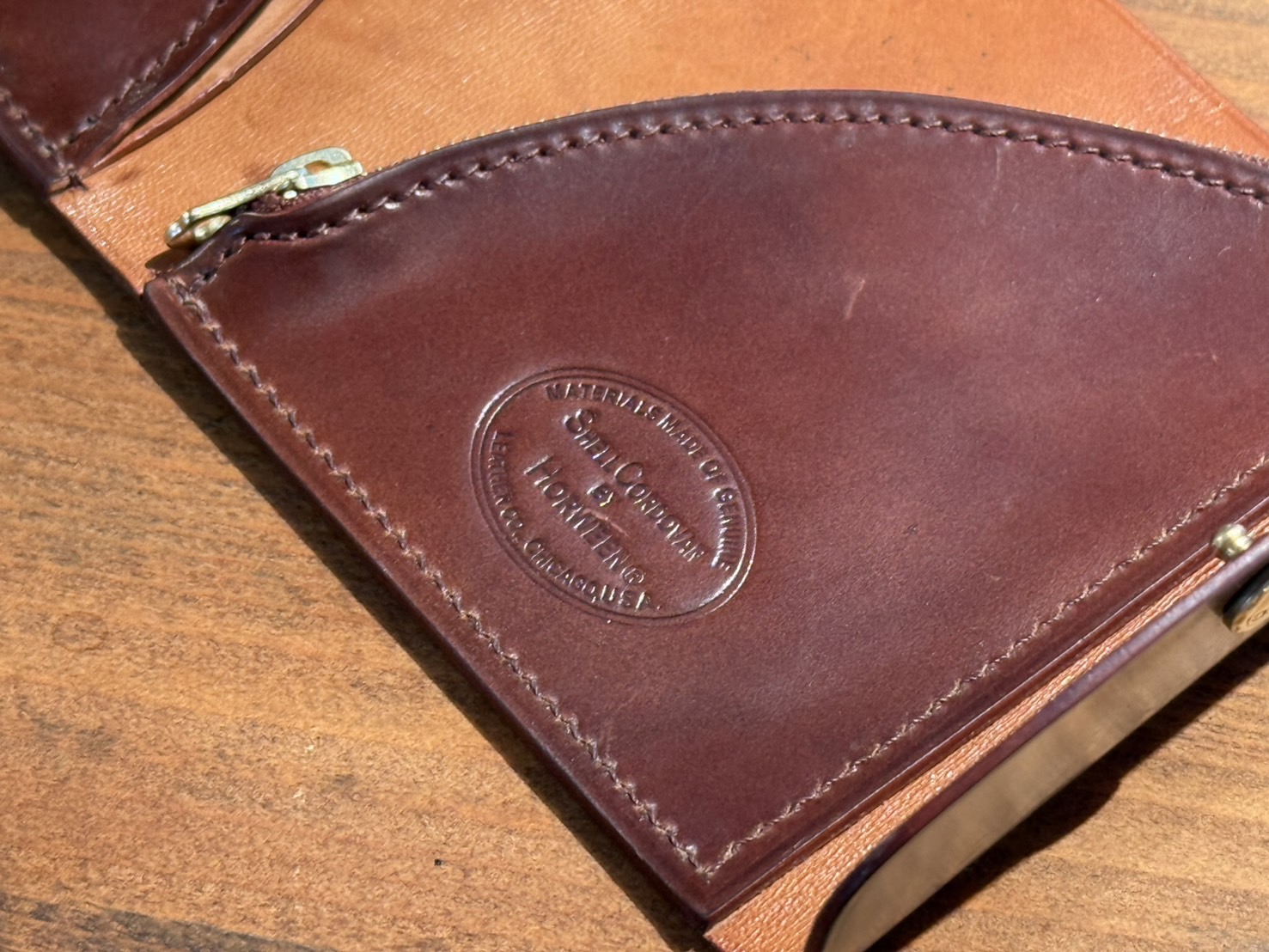 既製品と同様に内側にホーウィンスタンプが押してあることもこの財布の魅力の一つ