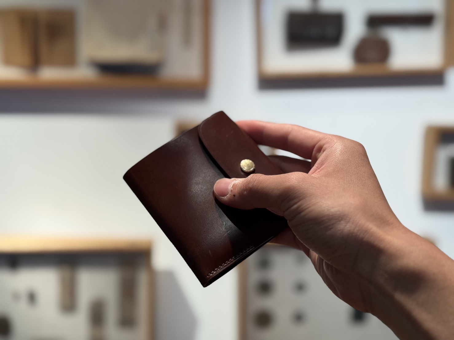 当店職人の小平の拘りでもありますが、デザイナーに依頼をして、素材の雰囲気や財布のデザインに合わせたパーツに仕上がりました!