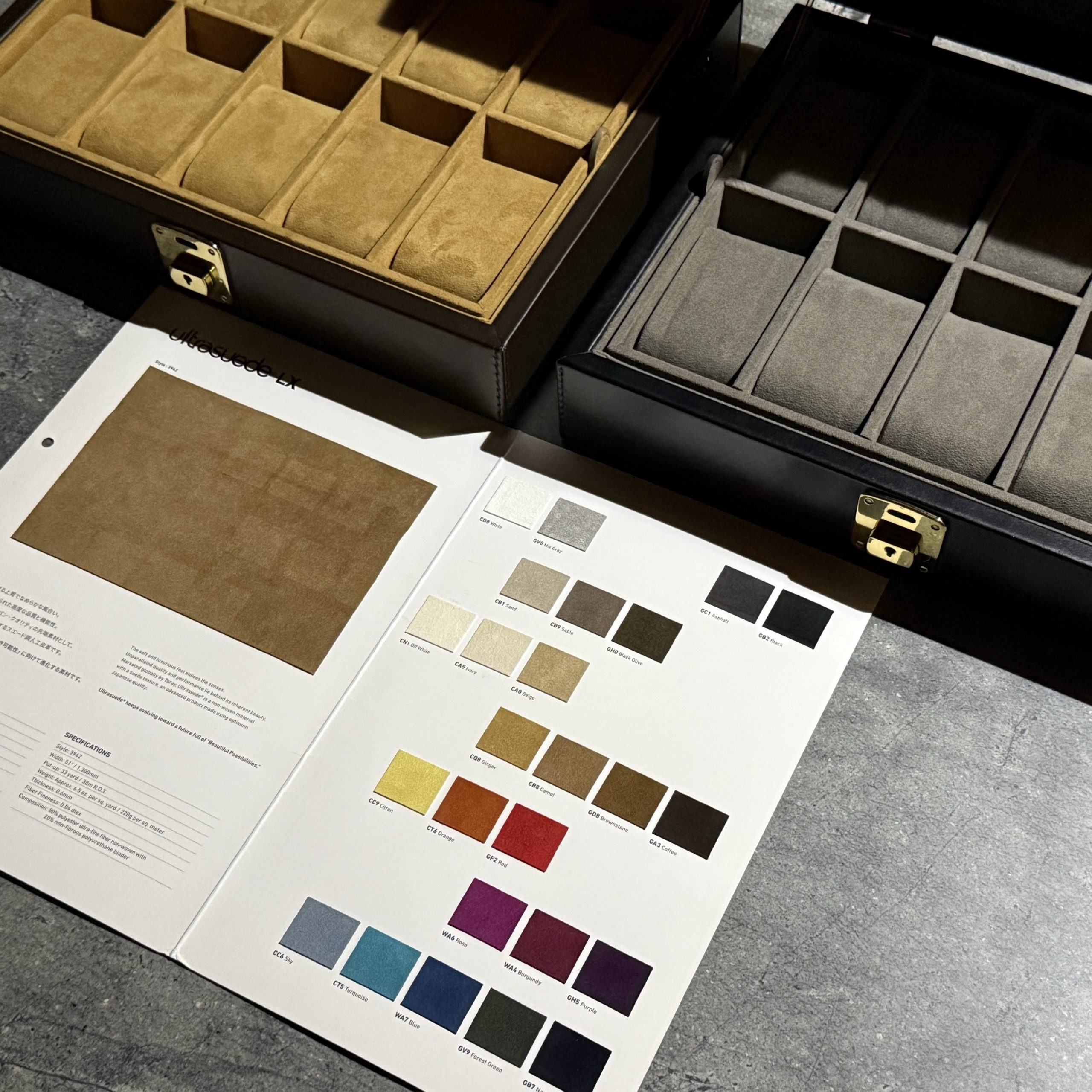 ウルトラスエード®LX 下記カラーラインナップよりお選びいただけます。
