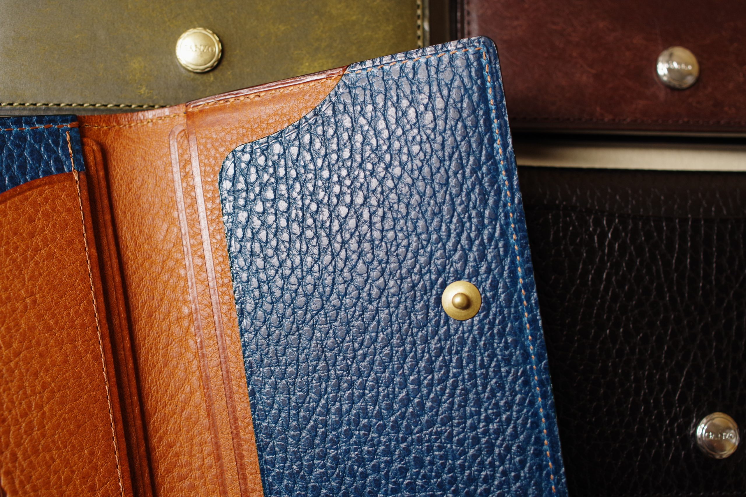 パスホルダーは元々、ドラーロ4色とプエブロ4色での展開でした。諸事情によりドラーロ ブルーのお披露目は今回が初めてで、満を持しての登場になります。内外装含め大阪店が今まで採用していなかった新しい色味の組み合わせです。