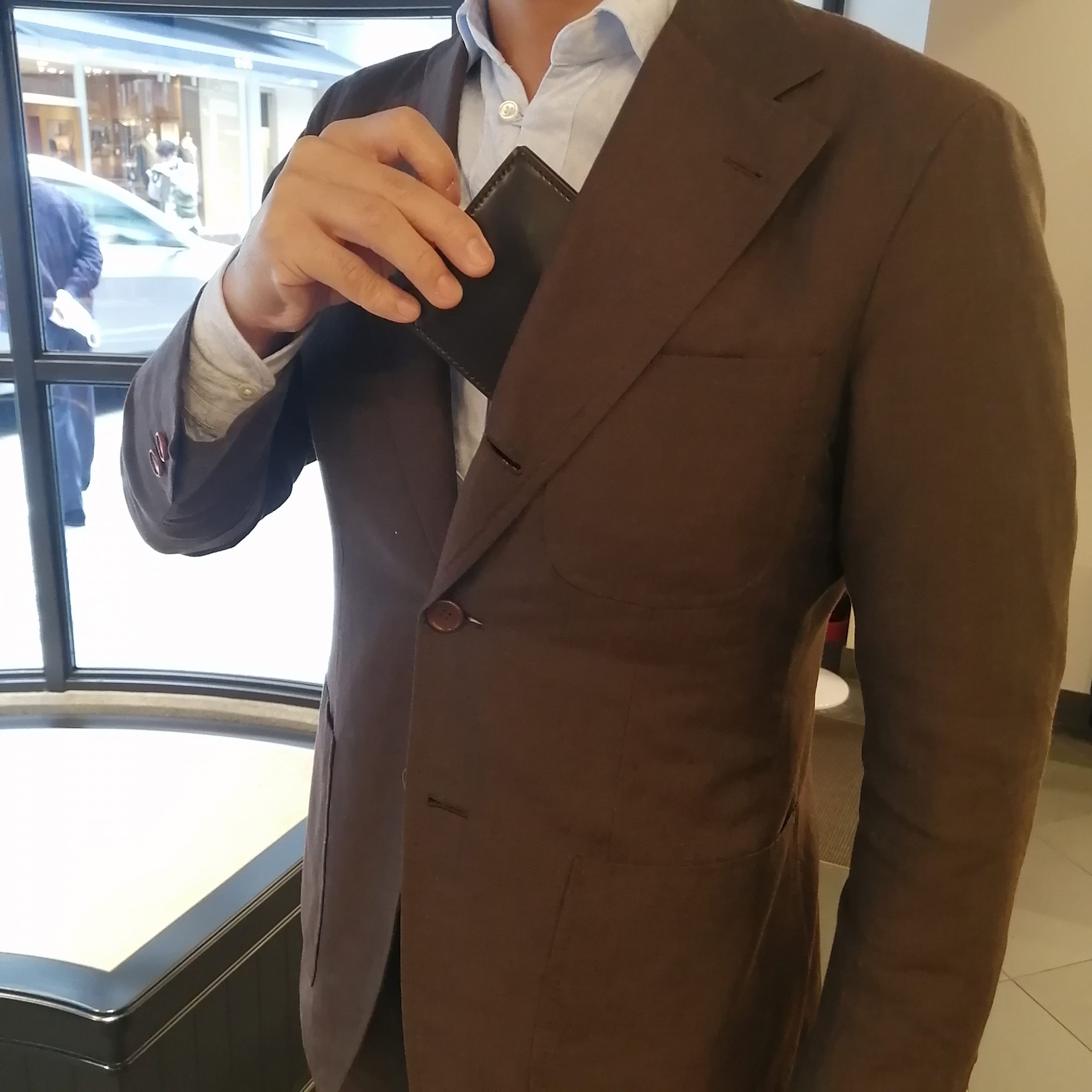 実際に内ポケットに入れてみた比較ですが、既製品の物はやはりシルエットに影響を与えたり、”あたり”を感じてしまいますがこちらはその様なことが無いのが嬉しいですね!