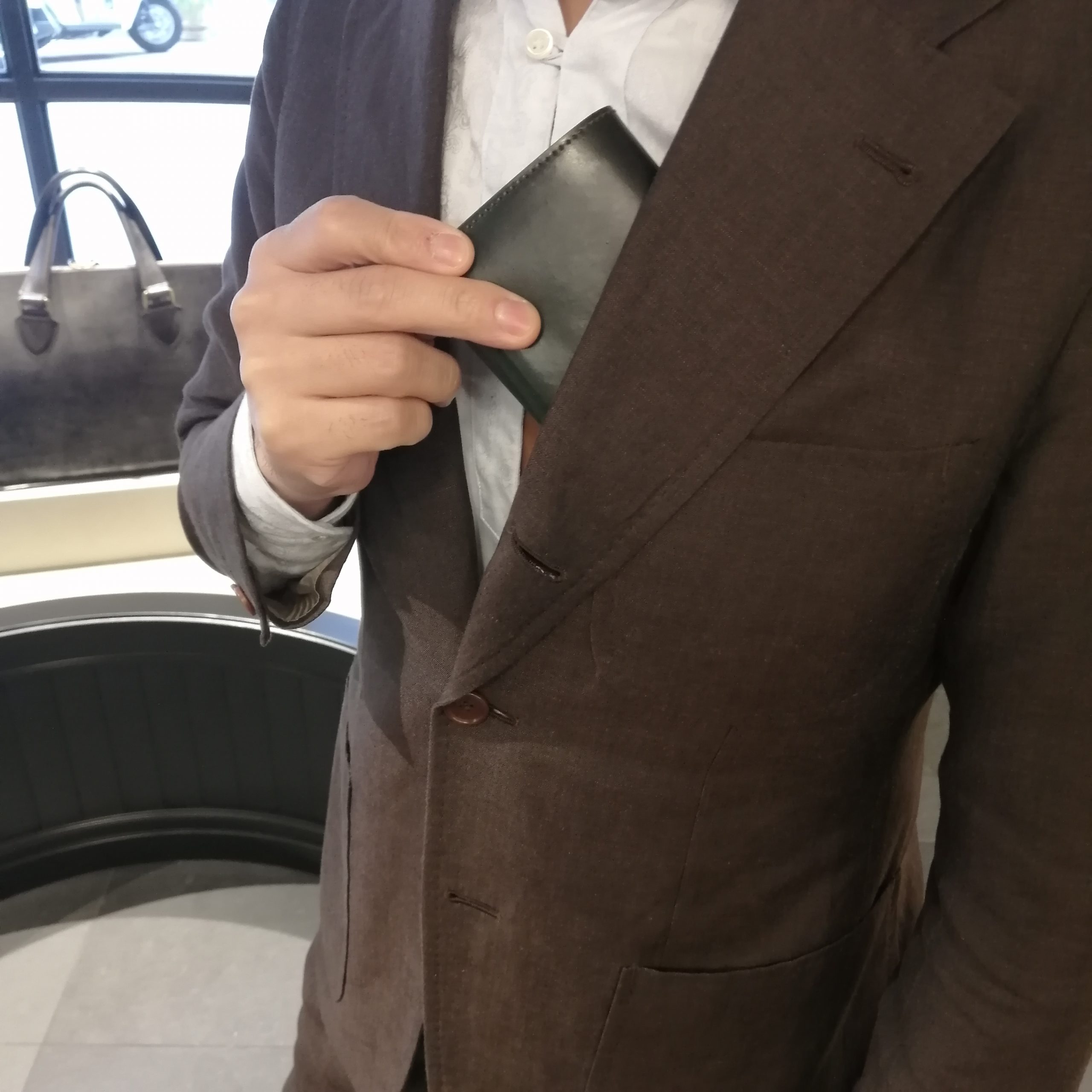 「やはり札入れはスーツの内ポケットに収納することが多いのですが、スーツの胸回りはシルエットに強く影響することもあり、入れるものは極力コンパクトに抑えたいというのは常に思っています。