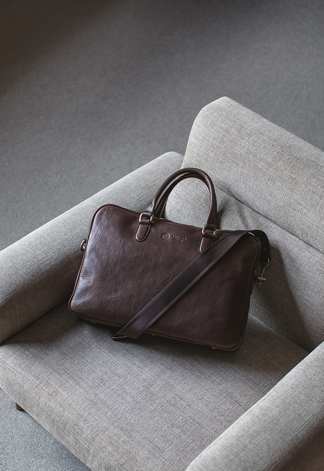 外装にブライドルレザー、内装はショルダーヌメを使用したハイブリッドな仕様。