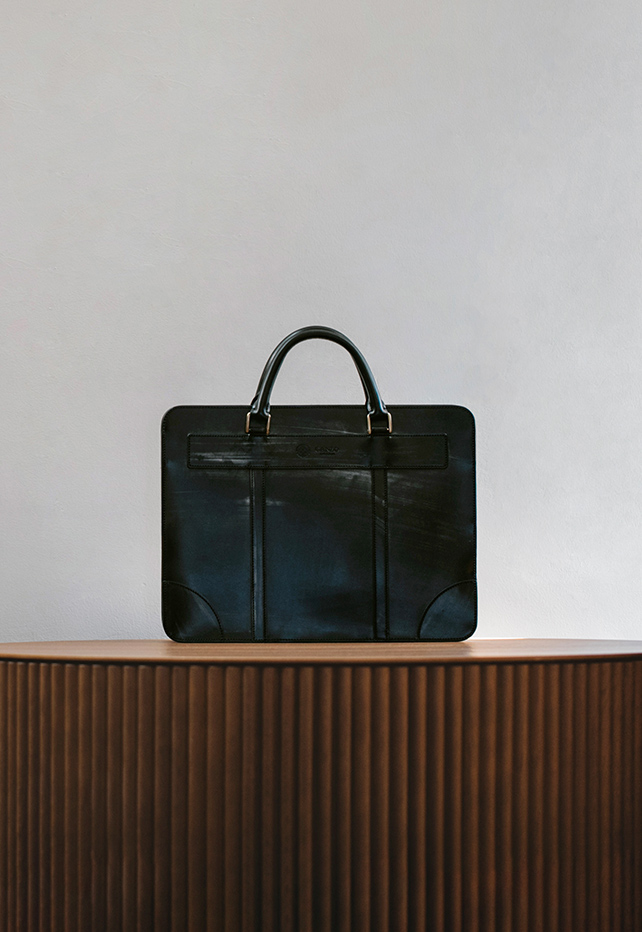 英国老舗トーマスウェア社の”芯通し”ブライドルレザーを用い、クラシックな風琴マチを取り入れた財布・小物や、モダンなビジネスバッグまでラインナップ。