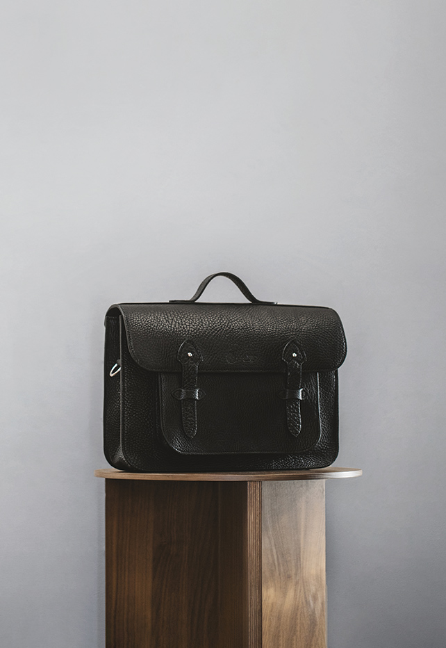 革全体へ不規則に広がった迫力あるシボが個性的かつ魅力的なイレギュラーシュリンク。英国の伝統的な学生鞄を現代的に解釈し、使いやすさとスタイルを両立させたバッグシリーズ。