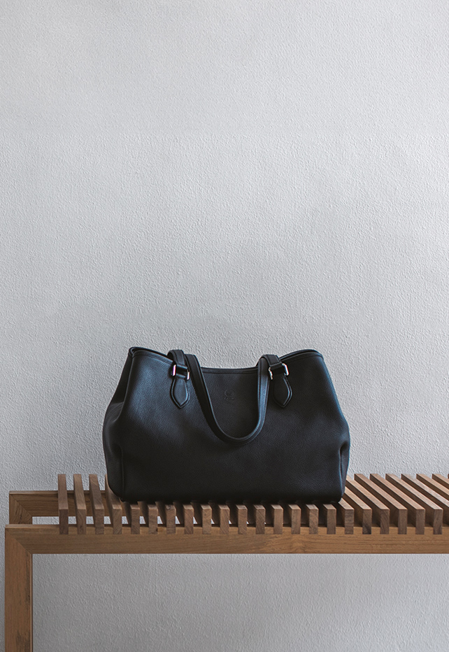 イタリア・トスカーナ地方の伝統的な製法で鞣した革は、自然の風合いから豊かな経年変化を存分に味わえる。