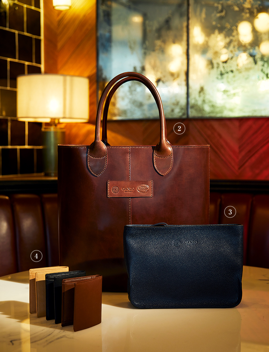 トートバッグの大きく開いた口は、氷や薪、食料を運搬するためのもの。翻って現代。高い運搬能力に対する需要は依然として高い。ファッション性の観点から厚手キャンバスのものに加えて、レザー製も一般的に。GANZOでは、銀座店のオープン(2021年1月30日)を記念し、使うごとに艶感が増すシェルコードバンを用いたトートをつくった。カラーはライトブラウン。丸みを帯びたフォルムがやわらかな品性を演出する。銀座店限定1本のみ販売。