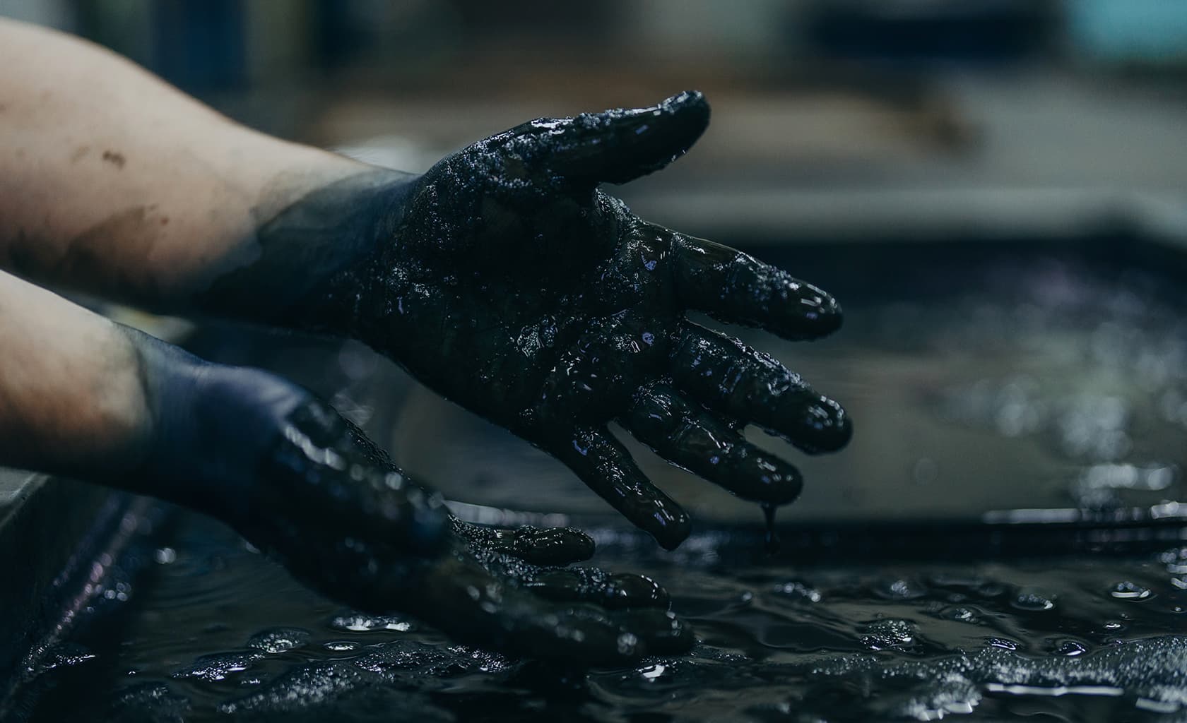 「すくも」ができた後、石灰・ふすま・灰汁を混ぜて「藍液」をつくる工程を「染師」がおこないます。混ぜる際にできる表面にぶくぶくと出てくる泡は「藍の花」と呼ばれ、発酵するために微生物が中で生きています。この状態なら染めて大丈夫という印でもあります。多くの染色には高温と薬品や鉱物によって繊維を染めるというイメージがありますが「藍」は微生物の力を借りて染めます。「藍液」を作るまでの過程に加え、作って長持ちさせるのにも技術が必要とされます。染めれば染めるほど微生物が少なくなるので、再び餌となるふすまを加えて藍液を育てます。さらに、好みの染色には技術は勿論、「知識」と「経験」がなくてはできません。藍染の色は名前がついているもので48色、色自体は100色以上あると言われています。これらの作業の積み重ねが「藍染」なのだと思います。