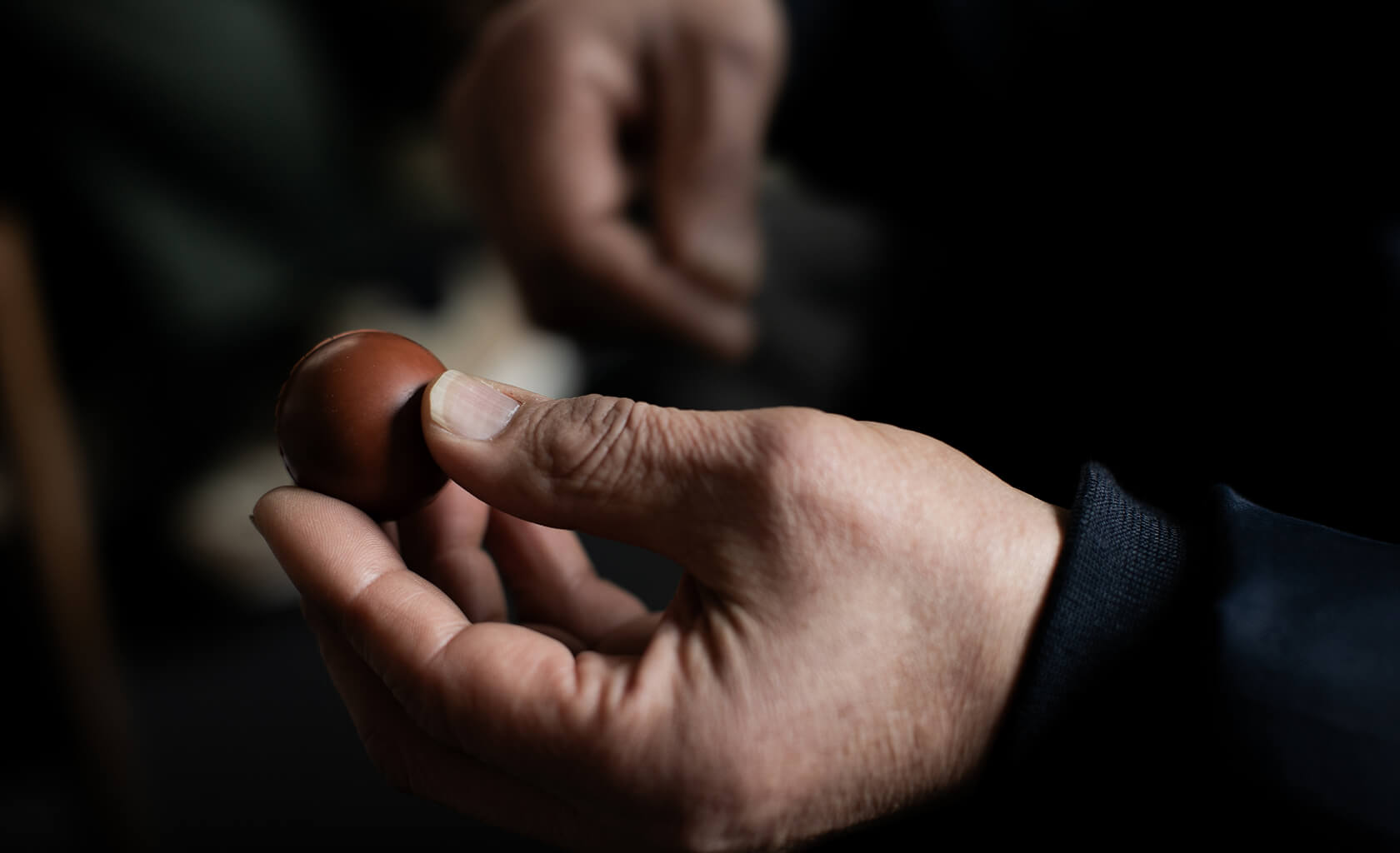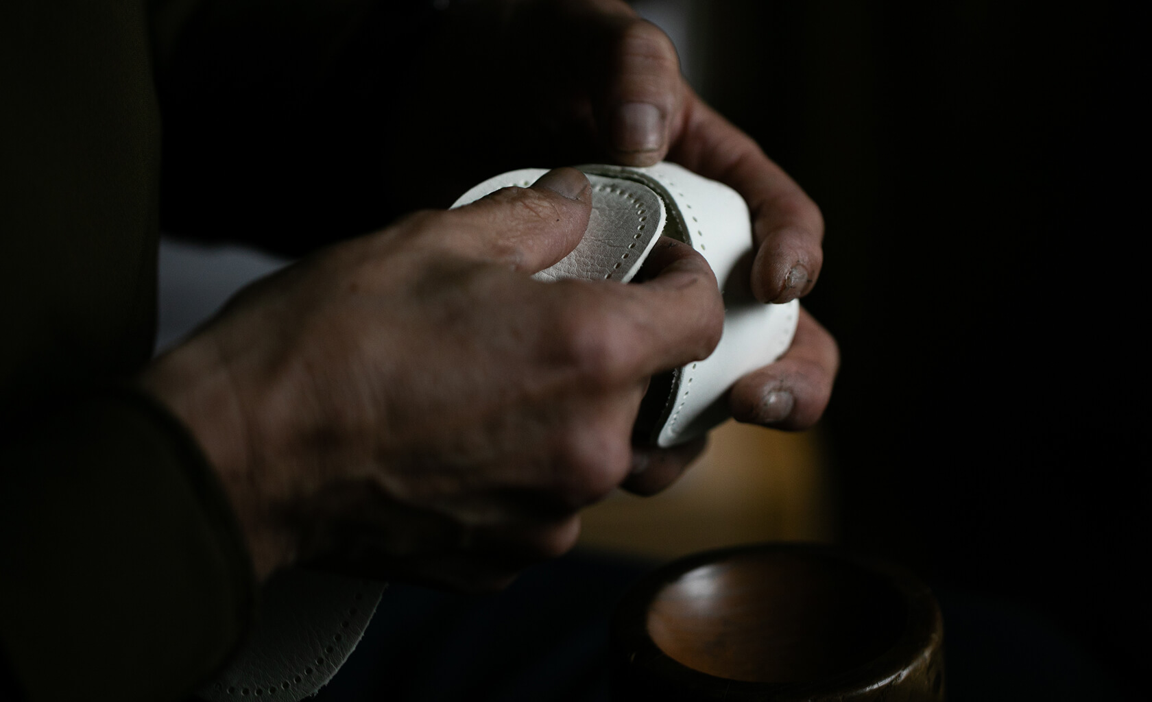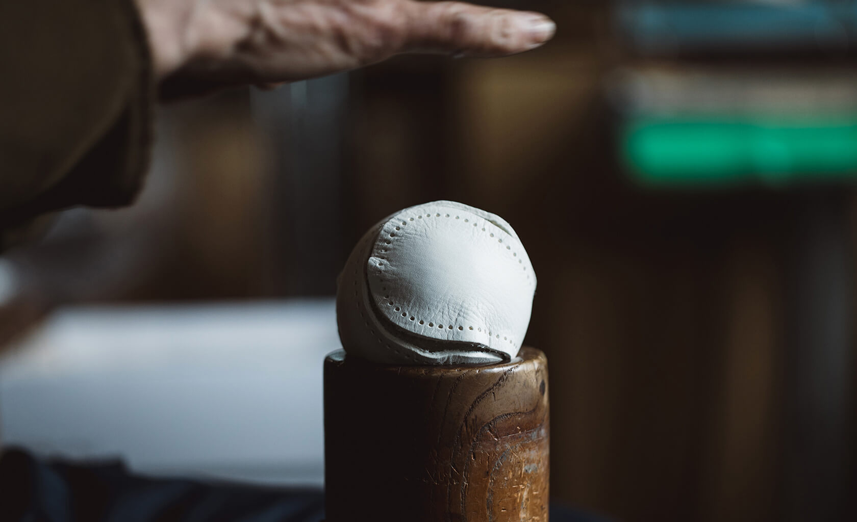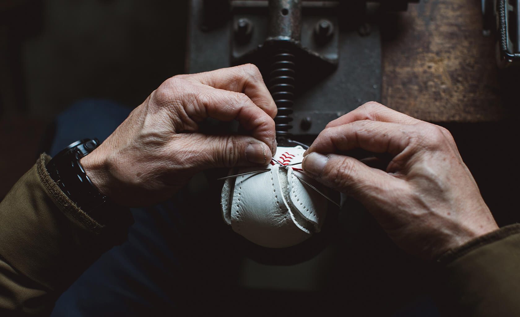 今回の野球ボールのために、この7QS-Rをボール用の厚みに特別に製作。通常のボールに用いられる革よりも柔らかいため、美しい球体を生み出すためには繊細な調整が欠かせません。職人が革の引き具合を一つひとつ手で確かめながら、何度も微調整を重ねて仕立てています。